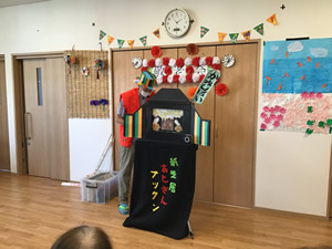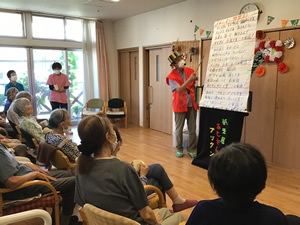 9月の金上は、久しぶりにボランティア様をお招きして、紙芝居や懐かしい童謡やクイズなどを披露していただきました。紙芝居も懐かしく皆様童心に還って聞き入っていました。